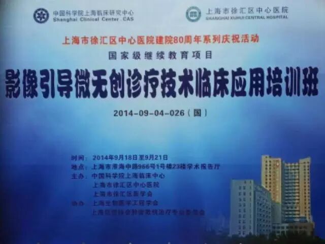 国家级继续教肓项目,影像引导微无创诊疗技术临床应用培训班,将定于2014年9月18日至21日在上海徐汇区中心医院一号楼23楼学术报告厅举行。